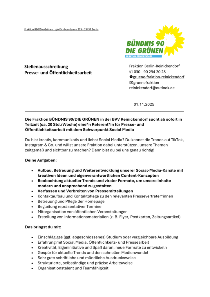 Stellenausschreibung Presse- und Öffentlichkeitsarbeit